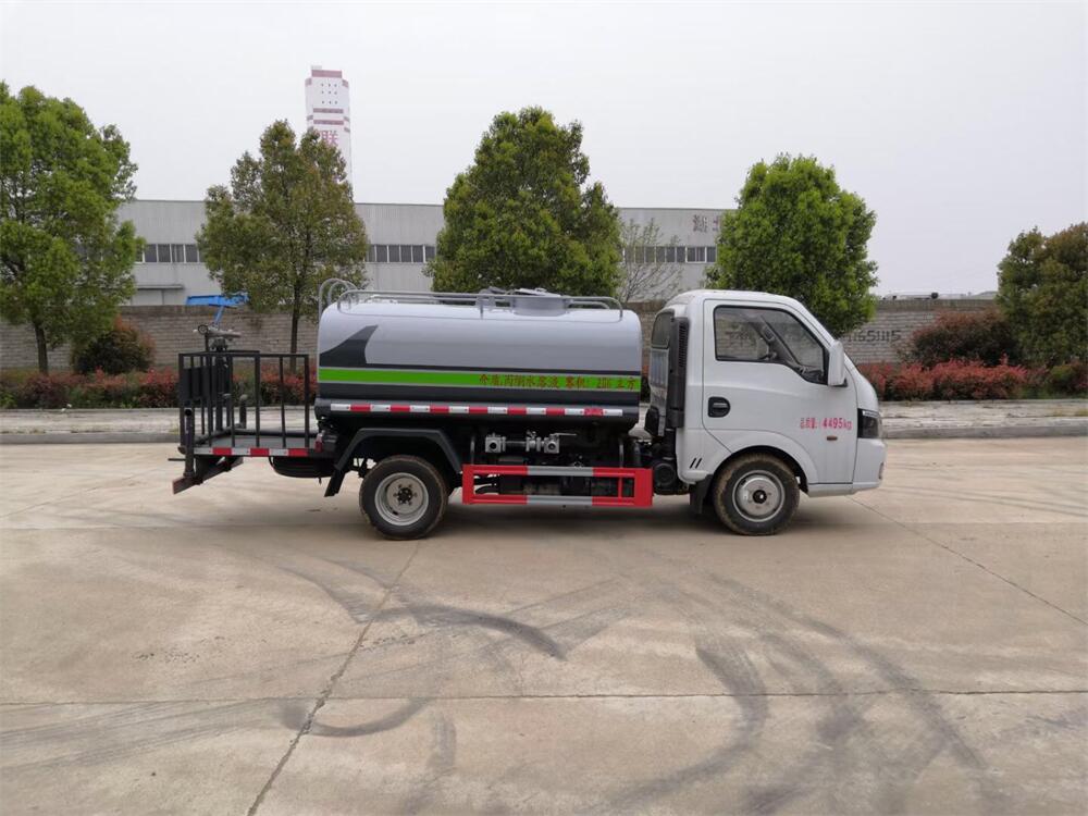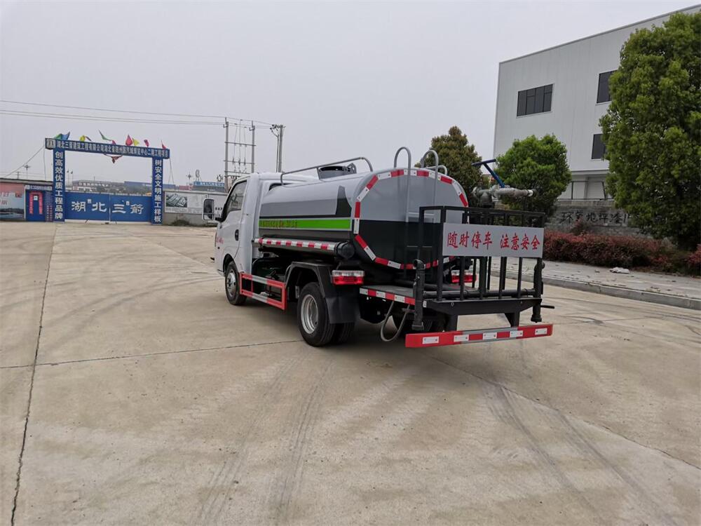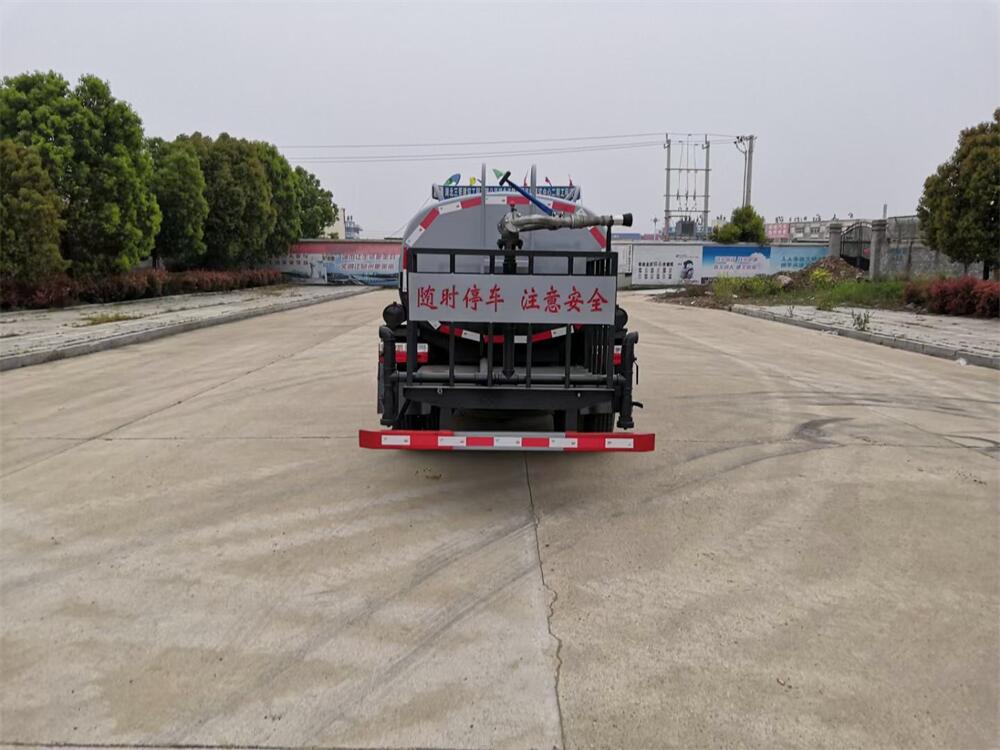 灑水車(chē)前裝有鴨形噴嘴或圓頭沖嘴,后面裝有圓柱開(kāi)灑水噴嘴或蓮蓬頭噴嘴,后部有一工作平臺(tái),裝配有水炮。后部還可裝8個(gè)噴嘴(選裝)。