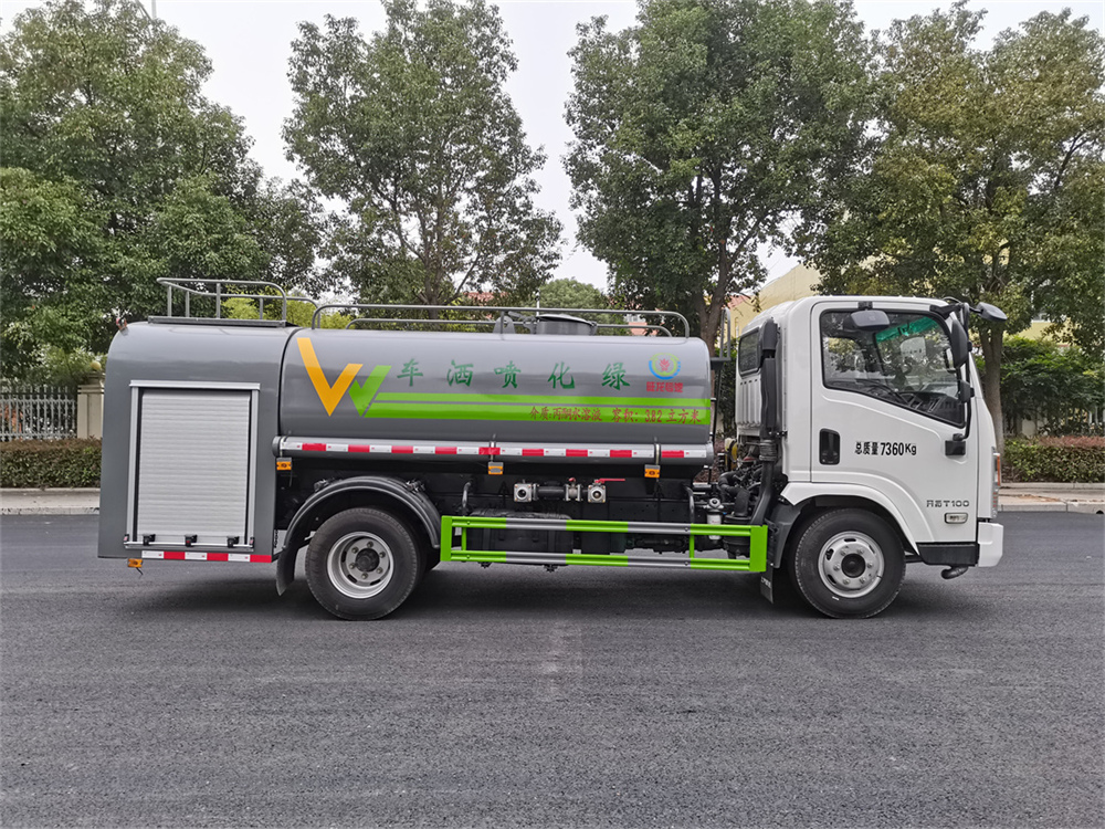 灑水車性能特點:前沖(噴)后灑,帶側(cè)噴,罐體后帶工作平臺,平臺上安裝綠化灑水炮,灑水炮可360旋轉(zhuǎn),可連續(xù)調(diào)成直沖狀、大雨、小雨、毛毛雨,帶安全護欄,配備全國質(zhì)量評比**名的杭州威龍大功率專用  灑水泵,泵可自吸自排,安裝過濾網(wǎng),帶消防接口,可通過消防栓進水,帶自流閥,隨車選裝20米綠化卷盤,可噴灑農(nóng)藥。