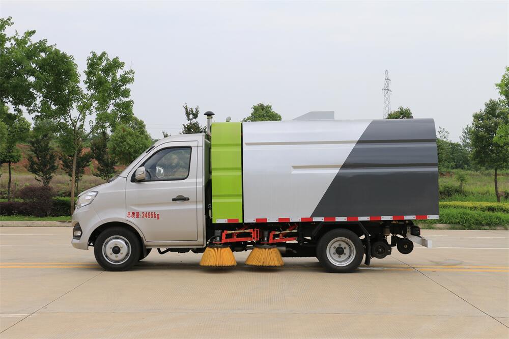 1.采用吸掃混合的方式收集垃圾,濕式除塵、電液,液壓傾翻卸料的作業(yè)方式對路面進行清掃作業(yè)。