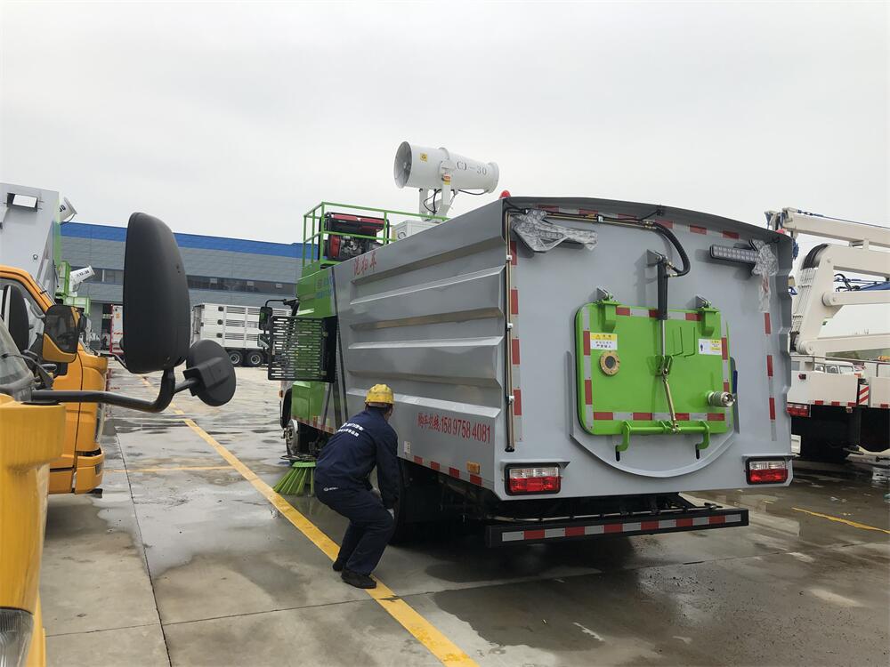 ①具有路面清掃、路面洗掃、路沿和路沿石立面洗刷、低壓沖洗和噴霧降塵等多種功能。可作為掃路車、洗掃車、路沿清洗車、路面沖洗車和噴霧降塵車使用。