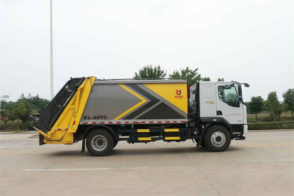 上裝配置:垃圾箱容積:12方,新款平面弧形廂體,廂體材料為武鋼優(yōu)質(zhì)碳鋼,PLC一鍵操作**,手電一體操作模式,兩側(cè)雙電控,帶駕駛室內(nèi)操作,底板支撐加強(qiáng),雙向壓縮,開放式易清潔污水箱。壓縮式垃圾車采用機(jī)電液一體化技術(shù),借助機(jī)、電、液聯(lián)合自動(dòng)**系統(tǒng)、電腦**、手動(dòng)操作系統(tǒng),通過填裝器和推鏟等專用裝置,實(shí)現(xiàn)垃圾倒入、壓碎或壓扁、強(qiáng)力裝填,把垃圾擠入車廂并壓實(shí)和推卸,污水全部進(jìn)入污水廂,解決了垃圾運(yùn)輸過程中的二次污染的問題。壓縮式垃圾車具有自動(dòng)反復(fù)壓縮以及蠕動(dòng)壓縮功能,壓縮比高、密封性好、裝載量大﹑操作方便、環(huán)保性好﹑整車?yán)霉β矢叩葍?yōu)點(diǎn)。作業(yè)自動(dòng)化,垃圾收集方式簡(jiǎn)便、高效。后翻轉(zhuǎn)機(jī)構(gòu)選裝:1、掛塑料桶式翻轉(zhuǎn)機(jī)構(gòu);2、掛鐵桶式翻轉(zhuǎn)機(jī)構(gòu);3、擺臂式翻轉(zhuǎn)機(jī)構(gòu); 4、簸箕斗式翻轉(zhuǎn)機(jī)構(gòu)。