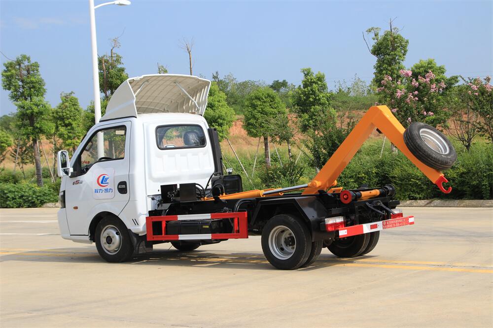 勾臂式垃圾車(車廂可卸式垃圾車)介紹: 車廂可卸式垃圾車又叫拉臂式垃圾車,是一種采用高新設(shè)計可伸縮的鉤臂,實現(xiàn)垃圾廂的二次吊裝,自吊上放下,可自行傾倒垃圾的環(huán)衛(wèi)設(shè)備。 拉臂式垃圾車結(jié)構(gòu)簡單,操作穩(wěn)定方便,裝卸效率高,機械化程度高,節(jié)省人力。鉤臂垃圾車一車可帶多個垃圾廂,在裝卸的運輸過程中可有效地避免二次污染。 拉臂垃圾車采用高新設(shè)計可擺動的鉤臂,垃圾箱由框架、開啟油缸、滑輪、后門和若干加強框架與鋼板焊接而成。調(diào)換貨廂快捷方便,貨廂上帶蓋(倒垃圾時可翻開),鉤臂垃圾車?yán)鴰w可選用碳鋼、不銹鋼材質(zhì)、內(nèi)部采取環(huán)氧樹脂防腐處理,改裝部分與原車底盤為可分離式,維修方便且保持了原車的機動性及行駛性能。