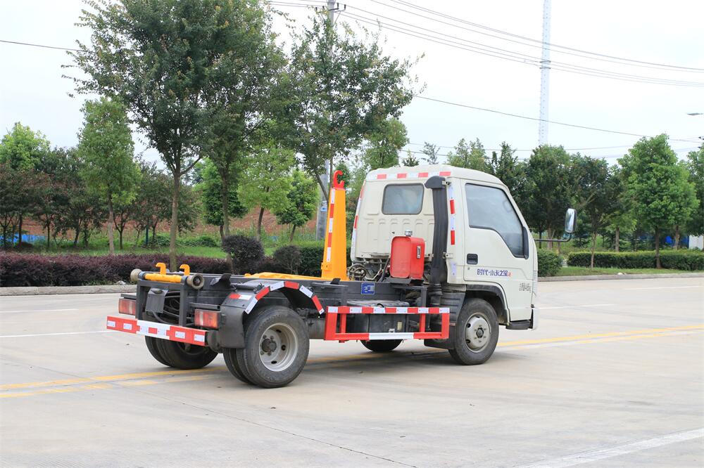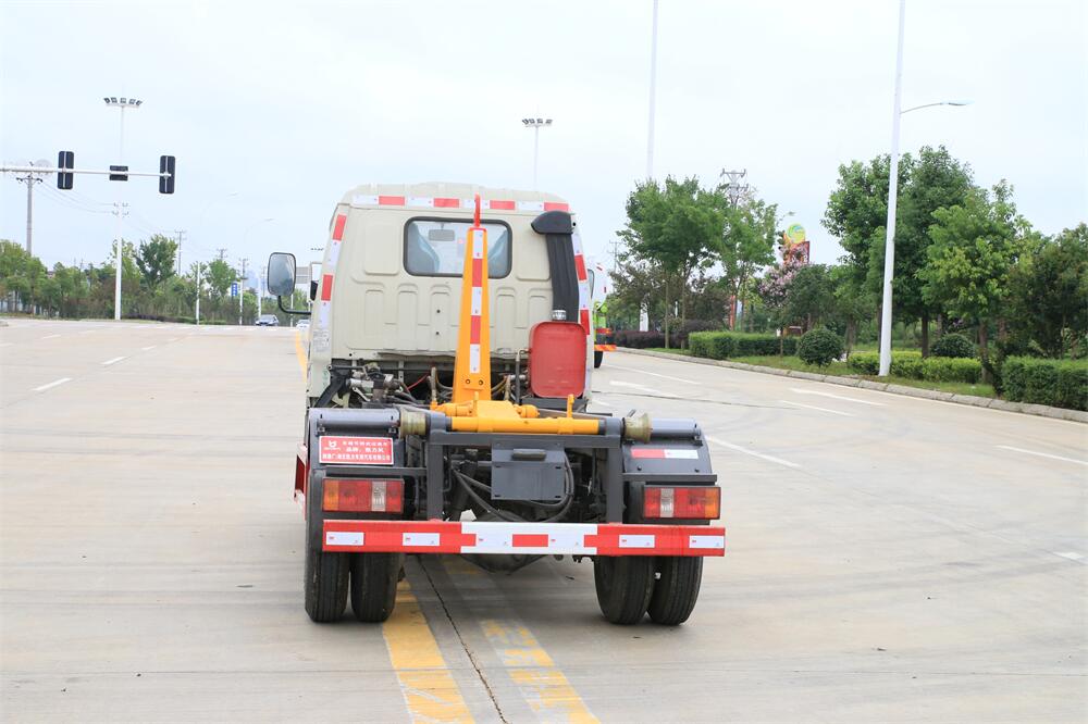 勾臂式垃圾車(chē)(車(chē)廂可卸式垃圾車(chē))介紹: 車(chē)廂可卸式垃圾車(chē)又叫拉臂式垃圾車(chē),是一種采用高新設(shè)計(jì)可伸縮的鉤臂,實(shí)現(xiàn)垃圾廂的二次吊裝,自吊上放下,可自行傾倒垃圾的環(huán)衛(wèi)設(shè)備。 拉臂式垃圾車(chē)結(jié)構(gòu)簡(jiǎn)單,操作穩(wěn)定方便,裝卸效率高,機(jī)械化程度高,節(jié)省人力。鉤臂垃圾車(chē)一車(chē)可帶多個(gè)垃圾廂,在裝卸的運(yùn)輸過(guò)程中可有效地避免二次污染。 拉臂垃圾車(chē)采用高新設(shè)計(jì)可擺動(dòng)的鉤臂,垃圾箱由框架、開(kāi)啟油缸、滑輪、后門(mén)和若干加強(qiáng)框架與鋼板焊接而成。調(diào)換貨廂快捷方便,貨廂上帶蓋(倒垃圾時(shí)可翻開(kāi)),鉤臂垃圾車(chē)?yán)鴰w可選用碳鋼、不銹鋼材質(zhì)、內(nèi)部采取環(huán)氧樹(shù)脂防腐處理,改裝部分與原車(chē)底盤(pán)為可分離式,維修方便且保持了原車(chē)的機(jī)動(dòng)性及行駛性能。