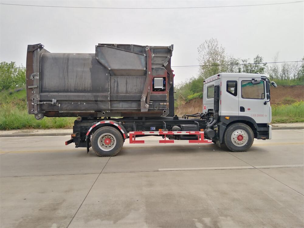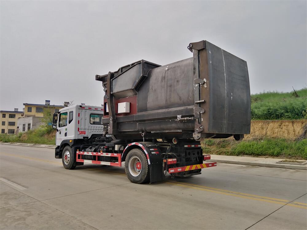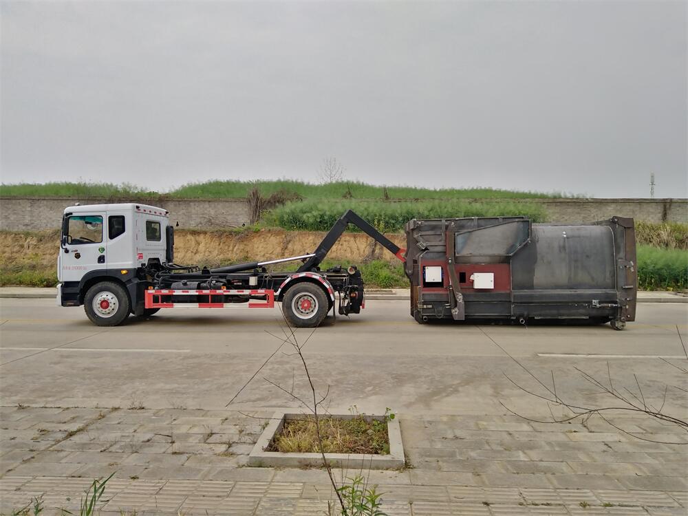 勾臂式垃圾車(車廂可卸式垃圾車)介紹: 車廂可卸式垃圾車又叫拉臂式垃圾車,是一種采用高新設(shè)計可伸縮的鉤臂,實現(xiàn)垃圾廂的二次吊裝,自吊上放下,可自行傾倒垃圾的環(huán)衛(wèi)設(shè)備。 拉臂式垃圾車結(jié)構(gòu)簡單,操作穩(wěn)定方便,裝卸效率高,機械化程度高,節(jié)省人力。鉤臂垃圾車一車可帶多個垃圾廂,在裝卸的運輸過程中可有效地避免二次污染。 拉臂垃圾車采用高新設(shè)計可擺動的鉤臂,垃圾箱由框架、開啟油缸、滑輪、后門和若干加強框架與鋼板焊接而成。調(diào)換貨廂快捷方便,貨廂上帶蓋(倒垃圾時可翻開),鉤臂垃圾車?yán)鴰w可選用碳鋼、不銹鋼材質(zhì)、內(nèi)部采取環(huán)氧樹脂防腐處理,改裝部分與原車底盤為可分離式,維修方便且保持了原車的機動性及行駛性能。