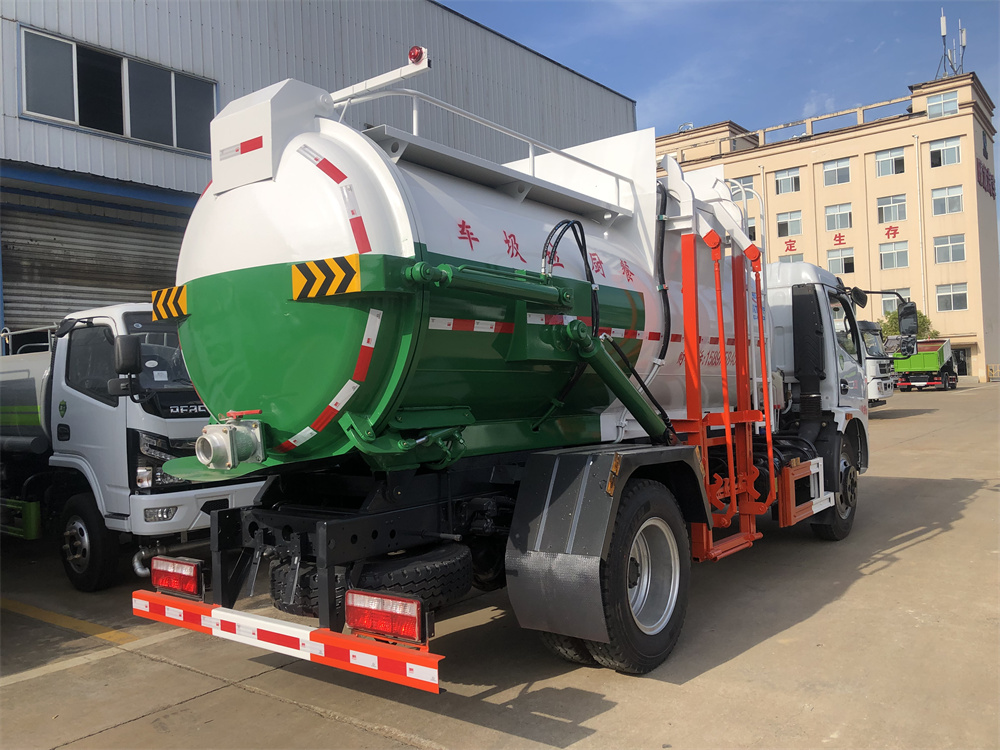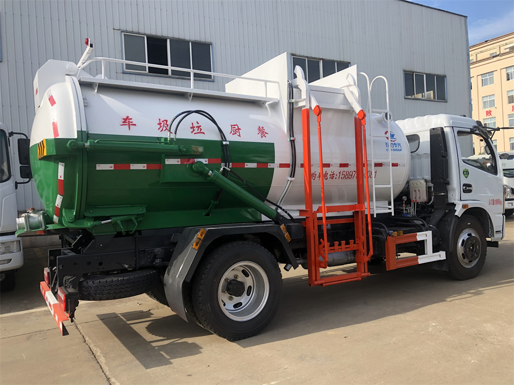 上裝配置:罐體容積8m3,配備120L/240L掛桶提升翻轉(zhuǎn)機(jī)構(gòu),液壓系統(tǒng),后蓋液壓鎖緊開啟,罐體可以舉升自卸,尾部帶自流閥;用于運(yùn)輸液態(tài)垃圾,其特點(diǎn)操作簡(jiǎn)單,密封性好,無泄漏,無異味;可選裝固液分離功能,推板擠壓功能,常用于餐館的垃圾轉(zhuǎn)運(yùn)處理。