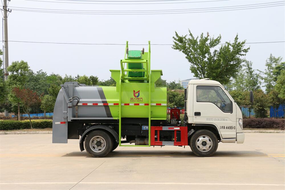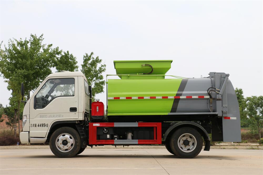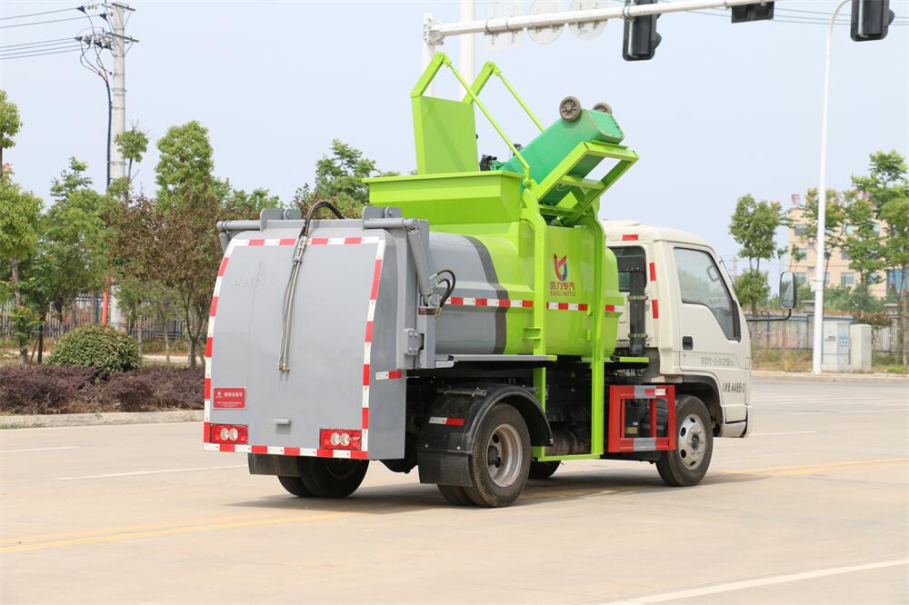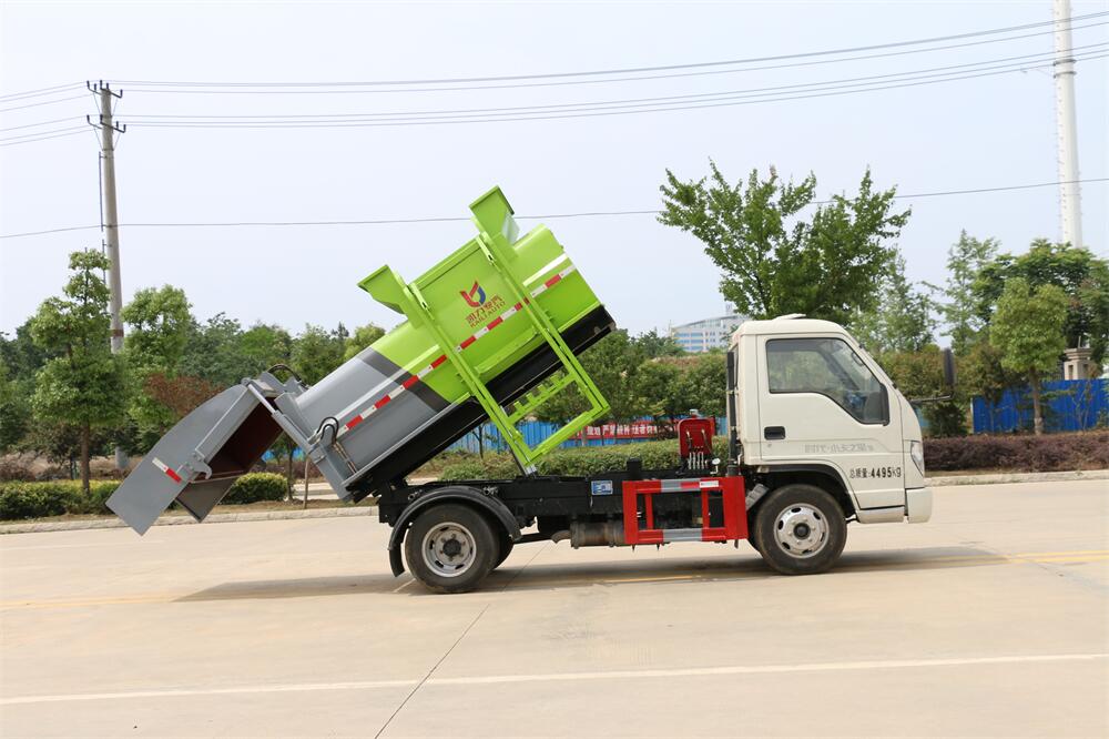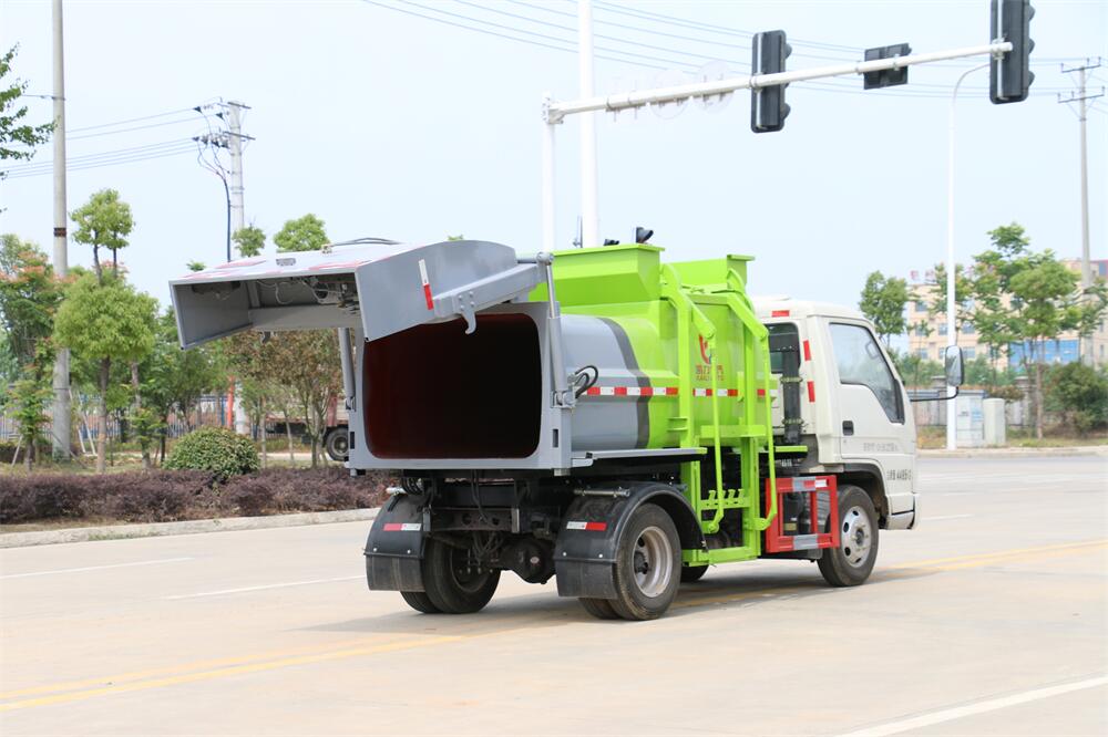 上裝配置:罐體容積4m3,配備120L/240L掛桶提升翻轉(zhuǎn)機(jī)構(gòu),液壓系統(tǒng),后蓋液壓鎖緊開啟,罐體可以舉升自卸,尾部帶自流閥;用于運(yùn)輸液態(tài)垃圾,其特點(diǎn)操作簡(jiǎn)單,密封性好,無(wú)泄漏,無(wú)異味;可選裝固液分離功能,推板擠壓功能,常用于餐館的垃圾轉(zhuǎn)運(yùn)處理。