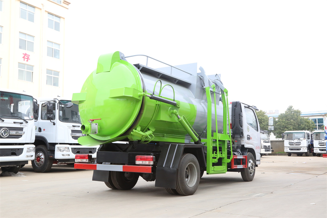 上裝配置:罐體容積6m3,配備120L/240L掛桶提升翻轉(zhuǎn)機(jī)構(gòu),液壓系統(tǒng),后蓋液壓鎖緊開啟,罐體可以舉升自卸,尾部帶自流閥;用于運(yùn)輸液態(tài)垃圾,其特點操作簡單,密封性好,無泄漏,無異味;可選裝固液分離功能,推板擠壓功能,常用于餐館的垃圾轉(zhuǎn)運(yùn)處理。