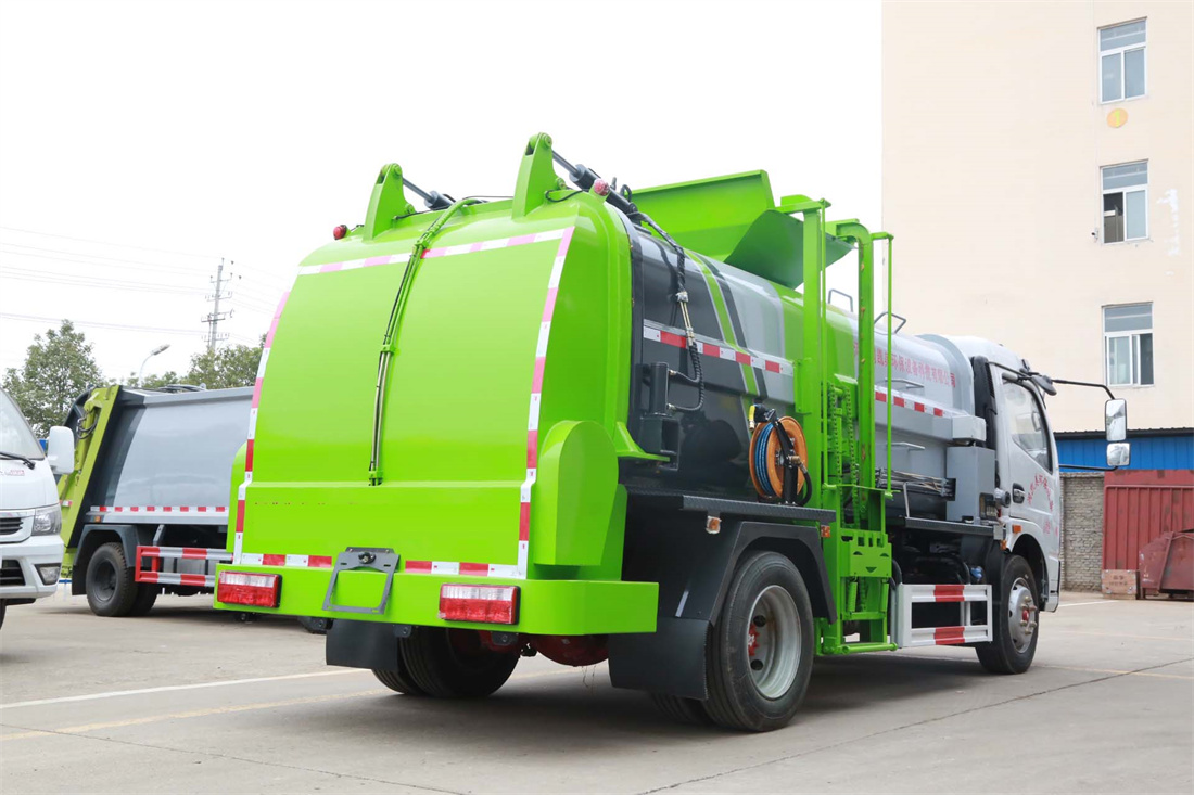 上裝配置:罐體容積8m3,配備120L/240L掛桶提升翻轉(zhuǎn)機(jī)構(gòu),液壓系統(tǒng),后蓋液壓鎖緊開啟,罐體可以舉升自卸,尾部帶自流閥;用于運(yùn)輸液態(tài)垃圾,其特點(diǎn)操作簡單,密封性好,無泄漏,無異味;可選裝固液分離功能,推板擠壓功能,常用于餐館的垃圾轉(zhuǎn)運(yùn)處理。
