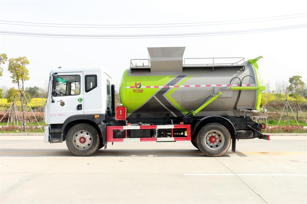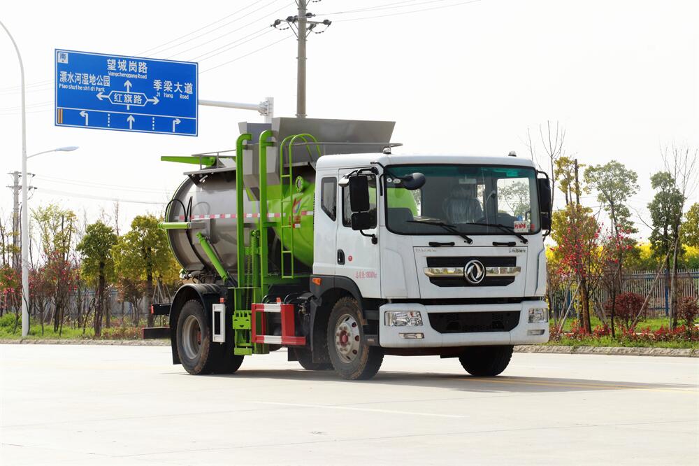 上裝配置:罐體容積10m3,配備120L/240L掛桶提升翻轉(zhuǎn)機(jī)構(gòu),液壓系統(tǒng),后蓋液壓鎖緊開(kāi)啟,罐體可以舉升自卸,尾部帶自流閥;用于運(yùn)輸液態(tài)垃圾,其特點(diǎn)操作簡(jiǎn)單,密封性好,無(wú)泄漏,無(wú)異味;可選裝固液分離功能,推板擠壓功能,常用于餐館的垃圾轉(zhuǎn)運(yùn)處理。