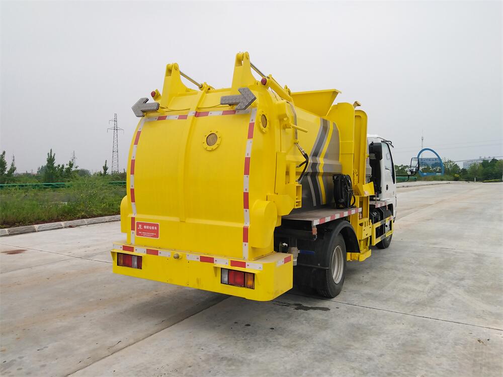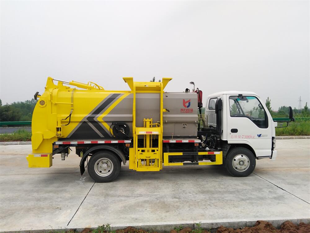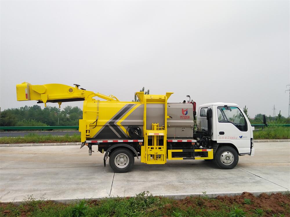上裝配置:罐體容積6m3,配備120L/240L掛桶提升翻轉(zhuǎn)機(jī)構(gòu),液壓系統(tǒng),后蓋液壓鎖緊開啟,罐體可以舉升自卸,尾部帶自流閥;用于運(yùn)輸液態(tài)垃圾,其特點(diǎn)操作簡(jiǎn)單,密封性好,無(wú)泄漏,無(wú)異味;可選裝固液分離功能,推板擠壓功能,常用于餐館的垃圾轉(zhuǎn)運(yùn)處理。