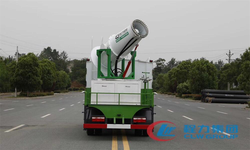 上裝配置:罐體容積為 8立方,選配風(fēng)送式霧炮機(jī)組射程30米、40米、50米、60米、80米、100米、120米霧炮,罐體鋼板為4mm碳鋼Q235材質(zhì),罐內(nèi)隔板具有防波作用,以減輕汽車行駛時(shí)罐體液體沖擊,罐體及整車外形尺寸按照公告。帶大功率專用灑水泵,泵可自吸自排,整車前沖、后灑、側(cè)噴、帶65消防接口,后平臺(tái)配CLW-50、CLW-60、CLW-80、CLW-100、CLW-120型風(fēng)送式霧炮機(jī)組;罐體前封頭配大功率柴油發(fā)電機(jī)組;前封頭帶水位計(jì),后平臺(tái)主管路帶1寸澆花接口,后爬梯。帶兩根輸水管及陰陽(yáng)端。罐體顏色:銀/灰/綠,罐體兩側(cè)噴“多功能抑塵車”字樣,貼反光標(biāo)示。