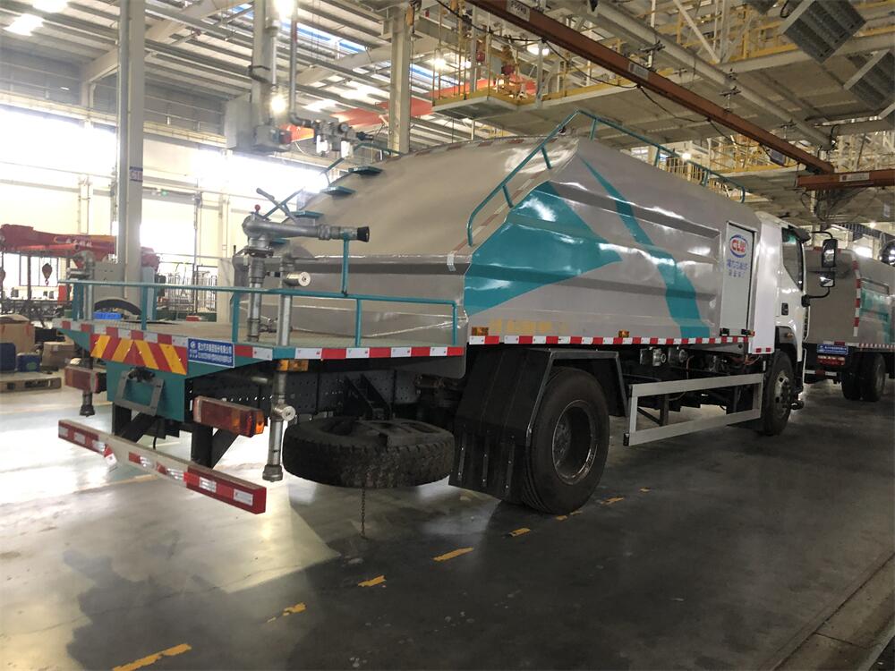 上裝配置:罐體容積為 8立方,選配風(fēng)送式霧炮機(jī)組射程30米、40米、50米、60米、80米、100米、120米霧炮,罐體鋼板為4mm碳鋼Q235材質(zhì),罐內(nèi)隔板具有防波作用,以減輕汽車行駛時罐體液體沖擊,罐體及整車外形尺寸按照公告。帶大功率專用灑水泵,泵可自吸自排,整車前沖、后灑、側(cè)噴、帶65消防接口,后平臺配CLW-50、CLW-60、CLW-80、CLW-100、CLW-120型風(fēng)送式霧炮機(jī)組;罐體前封頭配大功率柴油發(fā)電機(jī)組;前封頭帶水位計,后平臺主管路帶1寸澆花接口,后爬梯。帶兩根輸水管及陰陽端。罐體顏色:銀/灰/綠,罐體兩側(cè)噴“多功能抑塵車”字樣,貼反光標(biāo)示。