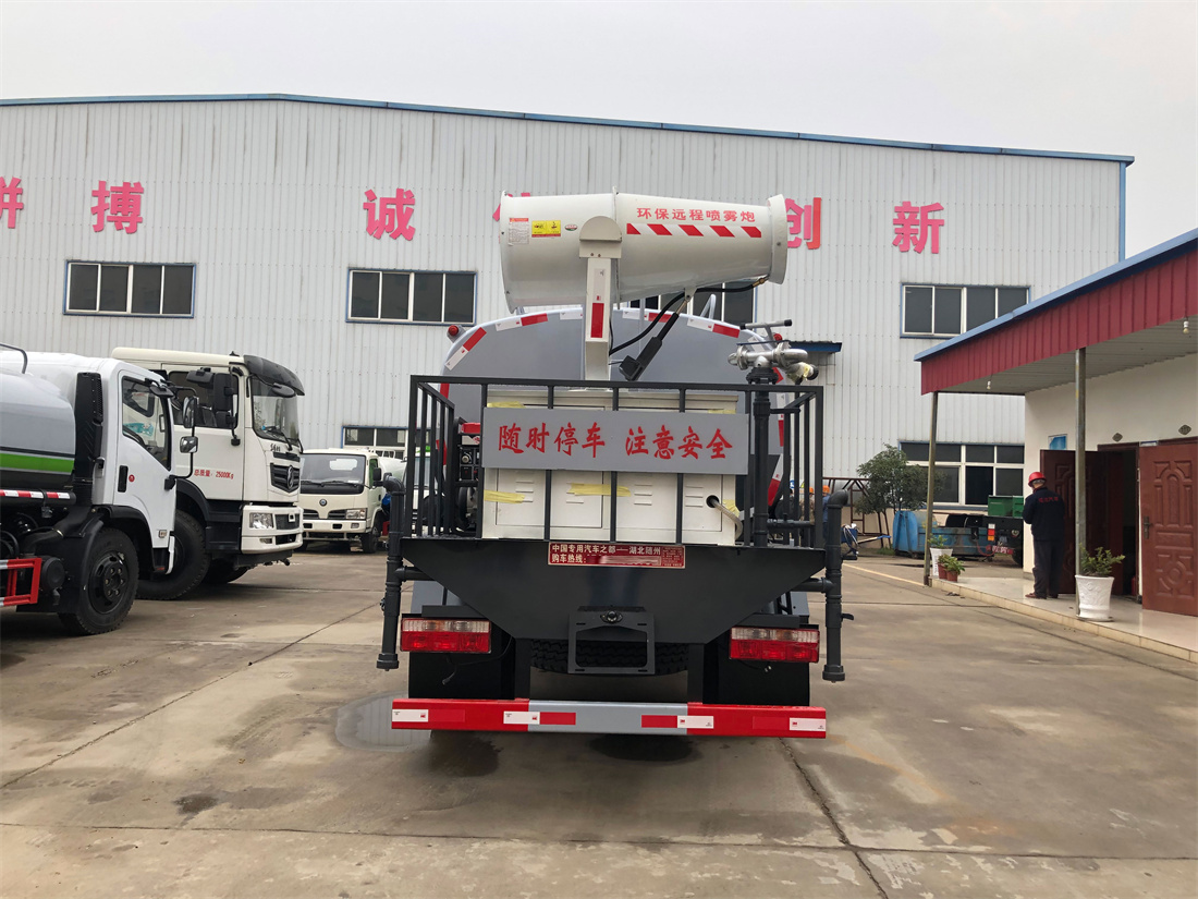 主要由發(fā)動機帶動變速箱,變速箱上安裝的取力器帶動灑水泵,灑水泵產(chǎn)生動力,將罐體內(nèi)部的液體通過管網(wǎng)噴灑出去。工作范圍:自吸高度:≥7m,灑水寬度:≥14m,**大射程:≥28m;可調(diào)節(jié)成柱狀,射程≥28m;也可調(diào)節(jié)成霧狀,射程≥5m。