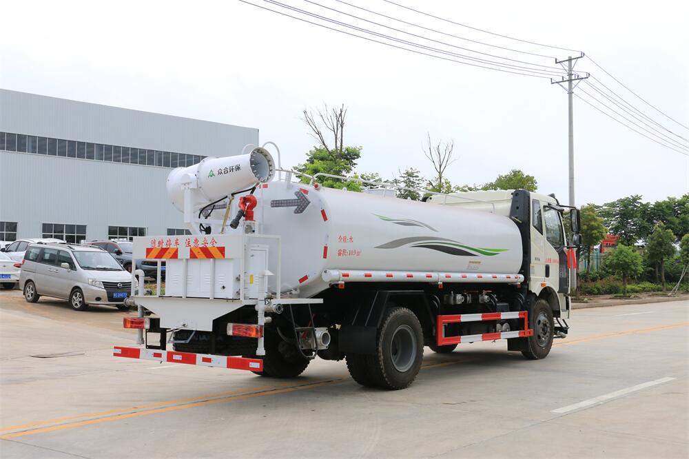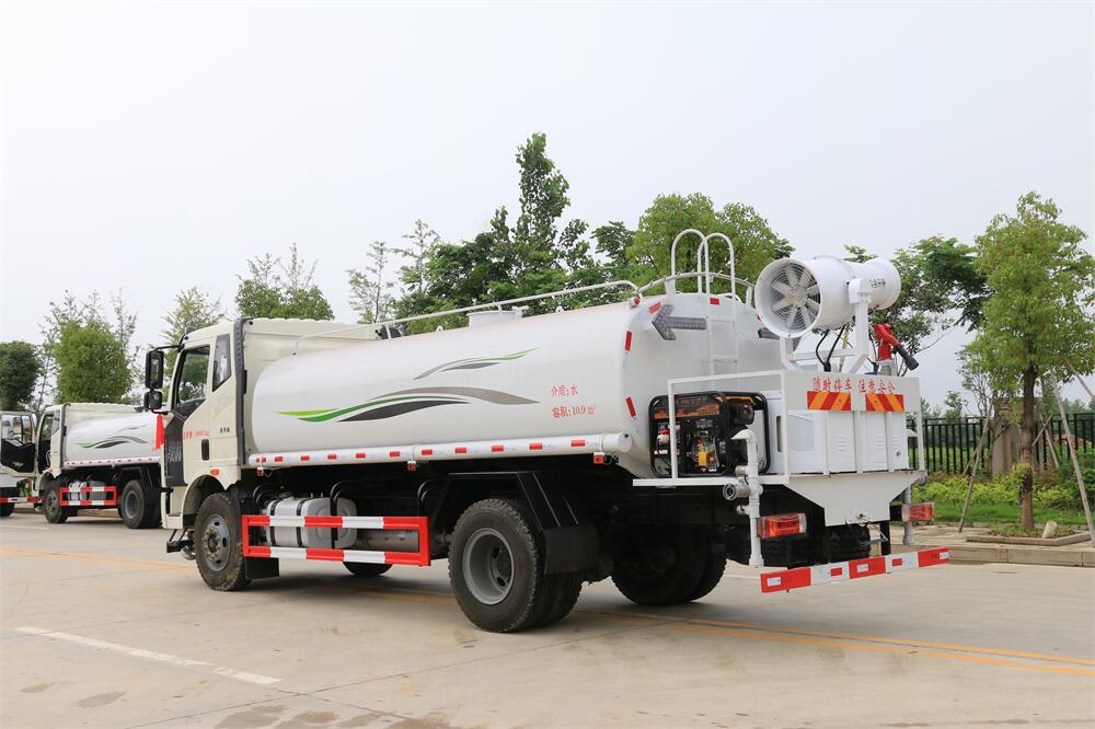上裝配置:罐體容積 15立方,風送式霧炮機組30米,40米選擇,罐體采用國標Q235碳鋼材質,罐體厚度4MM,前后封頭5MM加厚型,罐體內雙層隔板具有防波蕩作用,以減輕汽車行駛時罐內液體沖擊;灑水車整車及外形尺寸嚴格按照**機動車公告制作而成;裝配大功率專用灑水泵,前沖、后灑、側噴、后平臺帶綠化灑水炮,灑水炮可全方位旋轉,可連續(xù)調成直沖狀、大雨、小雨、毛毛雨;配消防接口,自流閥,濾網(wǎng),帶自吸自排功能。前封頭帶水位計,后平臺主管路帶1寸澆花接口,后爬梯,帶1個消防接頭,帶1個自流閥,1個過濾裝置,其余標配。