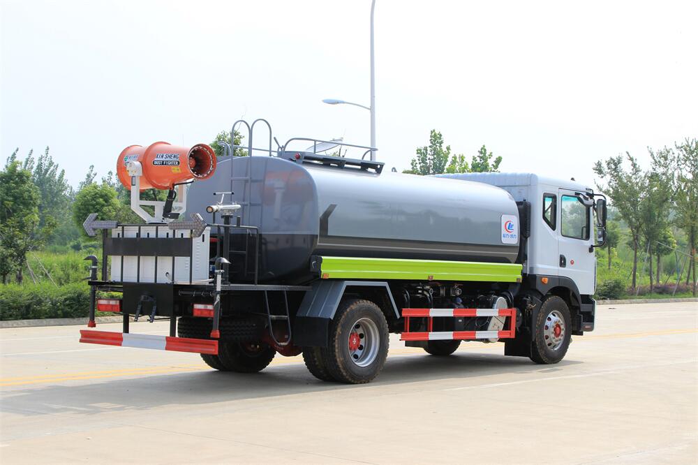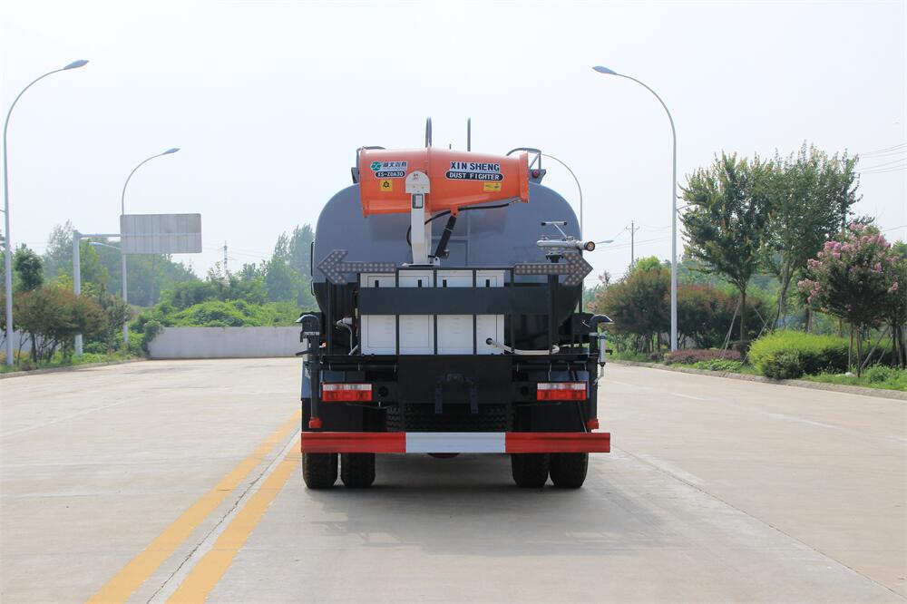 上裝配置:罐體容積 12-15立方,風送式霧炮機組30米,40米選擇,罐體采用國標Q235碳鋼材質(zhì),罐體厚度4MM,前后封頭5MM加厚型,罐體內(nèi)雙層隔板具有防波蕩作用,以減輕汽車行駛時罐內(nèi)液體沖擊;灑水車整車及外形尺寸嚴格按照**機動車公告制作而成;裝配大功率專用灑水泵,前沖、后灑、側(cè)噴、后平臺帶綠化灑水炮,灑水炮可全方位旋轉(zhuǎn),可連續(xù)調(diào)成直沖狀、大雨、小雨、毛毛雨;配消防接口,自流閥,濾網(wǎng),帶自吸自排功能。前封頭帶水位計,后平臺主管路帶1寸澆花接口,后爬梯,帶1個消防接頭,帶1個自流閥,1個過濾裝置,其余標配。