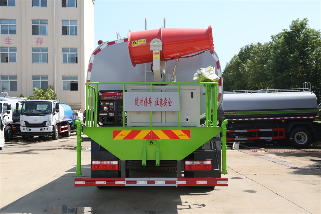 上裝配置:罐體容積 12-15立方,風(fēng)送式霧炮機(jī)組30米,40米選擇,罐體采用國標(biāo)Q235碳鋼材質(zhì),罐體厚度4MM,前后封頭5MM加厚型,罐體內(nèi)雙層隔板具有防波蕩作用,以減輕汽車行駛時(shí)罐內(nèi)液體沖擊;灑水車整車及外形尺寸嚴(yán)格按照**機(jī)動(dòng)車公告制作而成;裝配大功率專用灑水泵,前沖、后灑、側(cè)噴、后平臺帶綠化灑水炮,灑水炮可全方位旋轉(zhuǎn),可連續(xù)調(diào)成直沖狀、大雨、小雨、毛毛雨;配消防接口,自流閥,濾網(wǎng),帶自吸自排功能。前封頭帶水位計(jì),后平臺主管路帶1寸澆花接口,后爬梯,帶1個(gè)消防接頭,帶1個(gè)自流閥,1個(gè)過濾裝置,其余標(biāo)配。