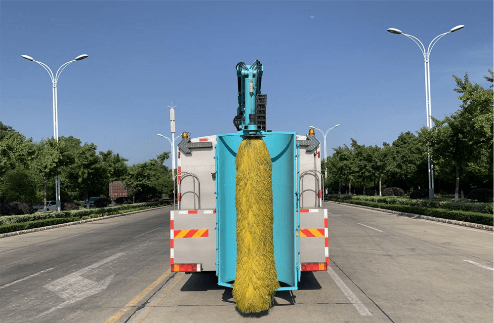 HCQ5250TXQDF6隔音屏清洗車(chē)的基本工作原理是利用安裝在回轉(zhuǎn)支承的折疊筆架上的直徑為1000MM,長(zhǎng)2000MM的高速旋轉(zhuǎn)(385R/MIN)的圓柱滾刷一邊噴射洗滌劑與清洗,一邊滾刷,能連續(xù)清洗2M寬的墻面。由于洗刷都安裝在回轉(zhuǎn)支承上可以左右旋轉(zhuǎn),所以墻面清洗車(chē)可在不換向的情況下,洗刷兩邊的墻面。此外洗刷還可以清洗路標(biāo)、廣告牌、高架橋等。本隔音屏清洗車(chē)的液壓、電氣元件采用國(guó)際**產(chǎn)品,性能優(yōu)良、工作可靠。