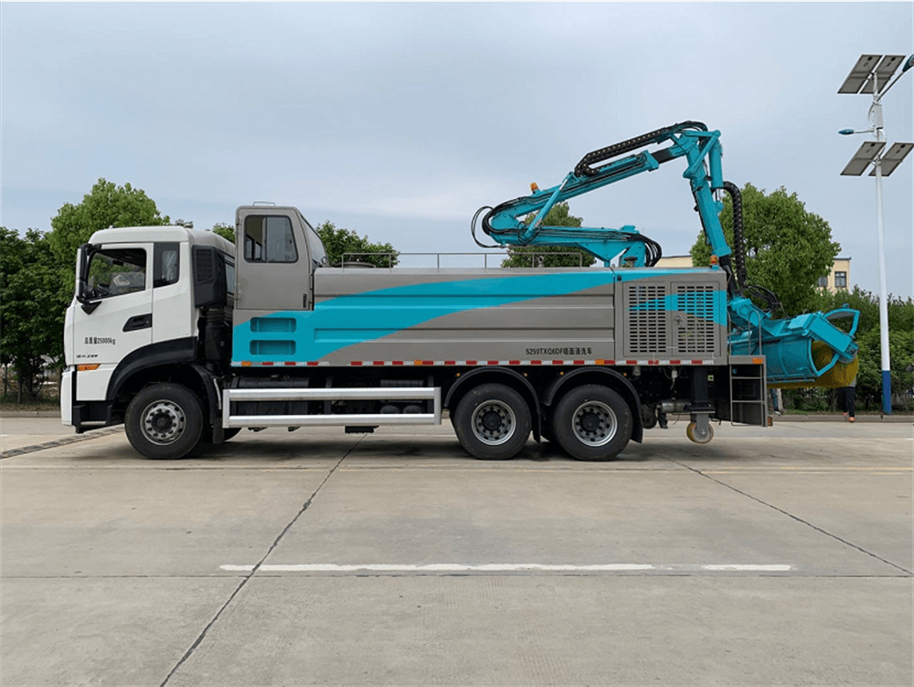 HCQ5250TXQDF6墻面清洗車(chē)是湖北五環(huán)聯(lián)合長(zhǎng)沙智能研究院推出的天龍高端墻面清洗車(chē)。該車(chē)采用東風(fēng)汽車(chē)股份有限公司DFH1250D4國(guó)六二類底盤(pán)改裝,加裝了副發(fā)動(dòng)機(jī)、液壓系統(tǒng)、高壓水泵、清水箱、洗滌劑箱、副駕駛室、折疊式清洗機(jī)構(gòu)、專用電控系統(tǒng)和橫向穩(wěn)定支撐輪機(jī)構(gòu)等組成。