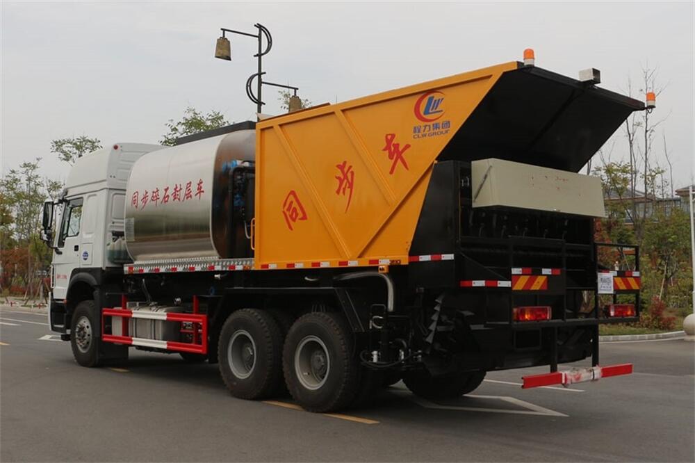 4、后雙橋同步碎石封層車完全采用電氣**,自動化程度高,,能**的計算出設(shè)備在施工過程中瀝青噴灑量和石屑撒布量的多少;