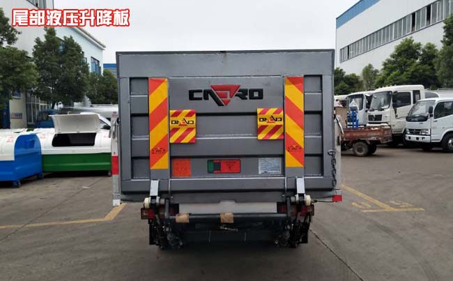 改裝箱體容積:3400×1750×600(mm),可裝15個垃圾桶,尾部液壓升降板,兩側(cè)側(cè)翻欄板,方便搬運垃圾桶,選裝定位桿,可防止垃圾桶在運輸過程中滑動或傾倒。適用與城市污水垃圾桶的運輸,防止城市路面二次污染。是保證城市路面清潔的必用專用車。
